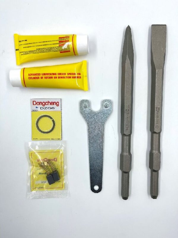 Grease, Auxiliary handle, Special wrench, Piston ring, Carbon brush, Plastic Case Packing